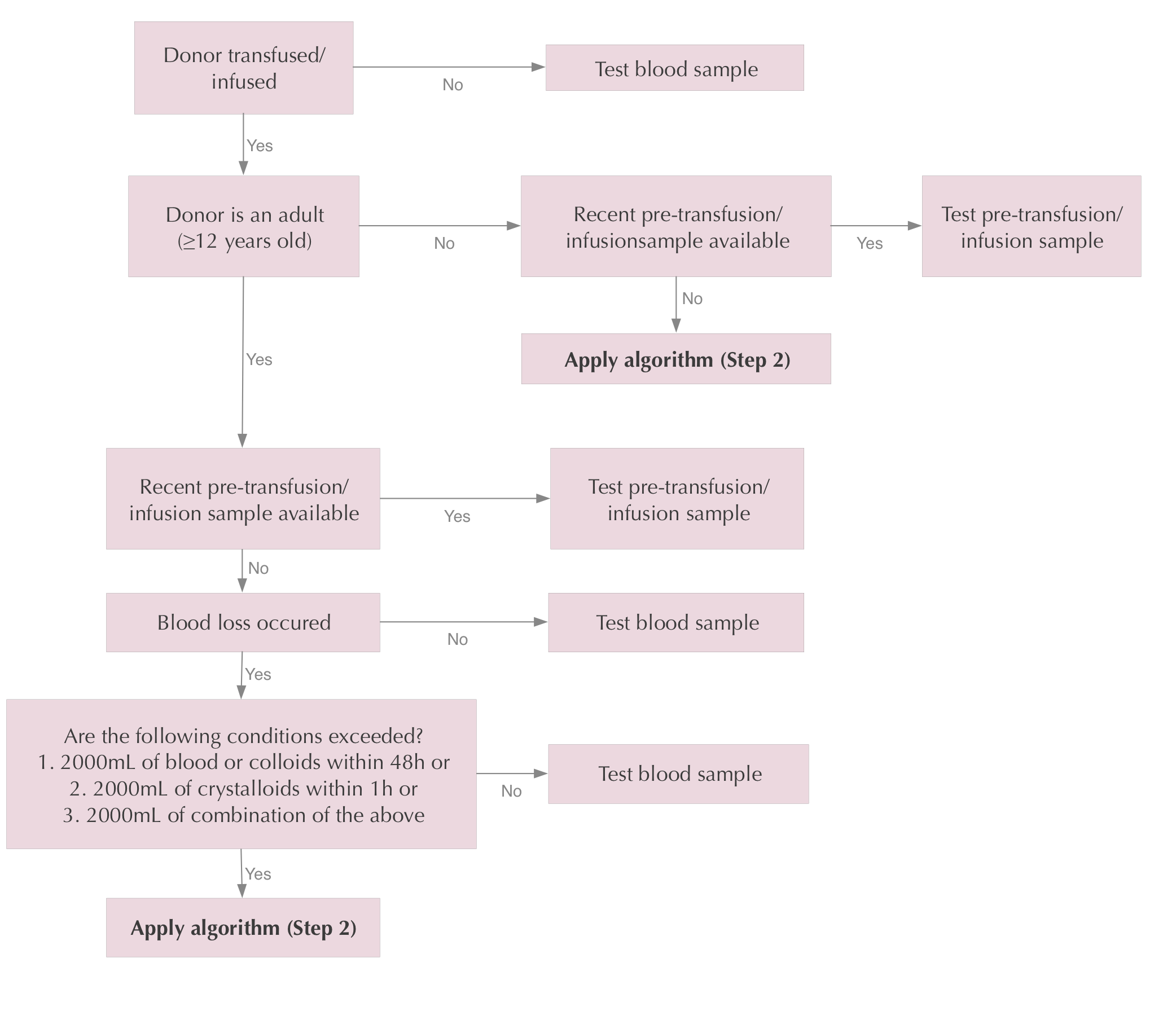 Please find attached an algorithm for determining the suitability of post-transfusion/infusion samples for mandatory screening for transmissible infections.