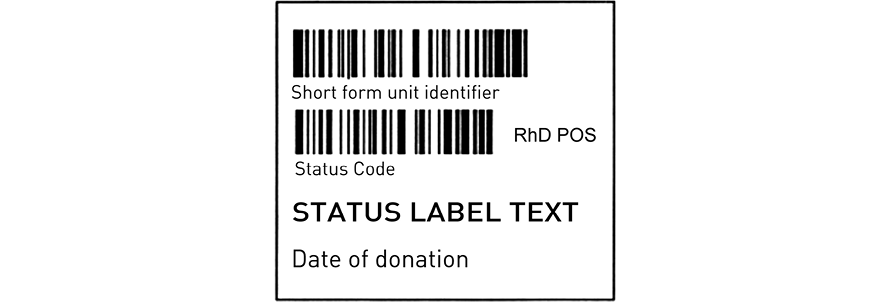 Text: The words ‘RhD POS’ in upper-case letters (except the ‘h’) of minimum height 6 mm to appear to the right of the status barcode