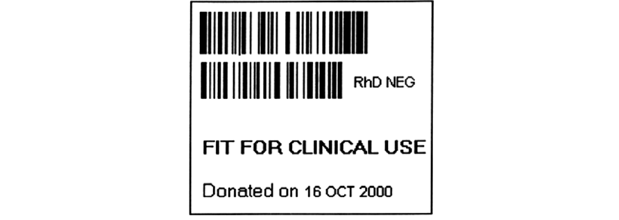 Specific information which applies to the donation may be included on this label. This includes the RhD blood group and the date of donation.