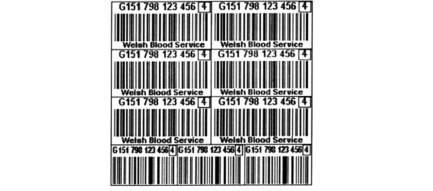 The tissue status label is unique to a specific donation. To ensure that it is affixed to the correct container a barcode, the nationally defined identification code, is printed on the label. This is used by the Service in a concatenated read with the donation identification number at the time of labelling. (Note: Although this is a non-ICCBBA defined data structure, it is ICCBBA authorised and controlled in the UK through the SACIT committee.)