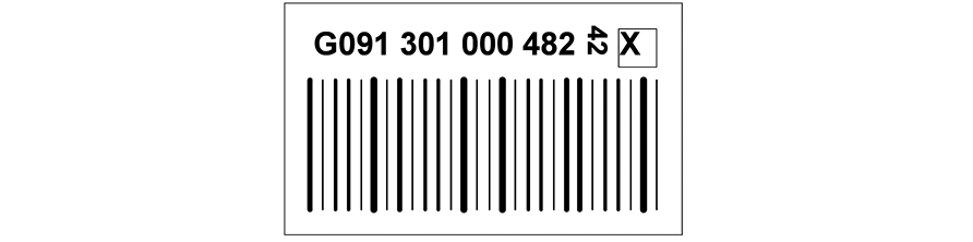 If process control flags are used within the donation identification number, they must be displayed as per the standard between the last digit and the boxed eye-readable check digit (i.e. 90 degrees to the rest of the number) as shown in Figure 24.7.